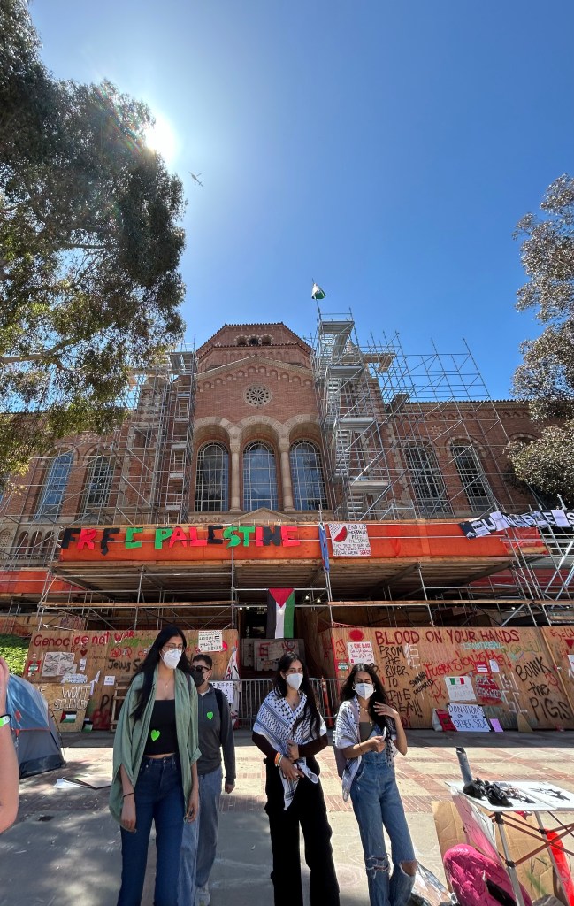 Los campamentos de la costa oeste llegaron un poco más tarde y se activaron en solidaridad con los del otro lado del país que fueron reprimidos. El de la Universidad de California Los Ángeles (UCLA) comenzó el jueves 25 de abril con la instalación de decenas de casas de campaña en el espacio central Royce Quad, acompañadas de pancartas, pintas y banderas de Palestina. Dado su carácter pacífico, respetuoso y festivo, no tardó en crecer y recibir apoyo de buena parte de su comunidad estudiantil, académica y administrativa. Empero, es importante tener presente que la riquísima diversidad política, étnica y racial imperante en este tipo de universidades implica que también hay un fuerte sector pro-Israel que lleva tiempo sintiéndose cuestionado, atacado, ofendido, el cual se hizo presente al poco tiempo frente al campamento pro-Palestina.